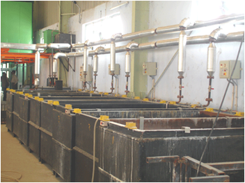 - T-6 Phosphatising Tank: The tank provides a fine layer of phosphate which helps in excellent adhesion of paint as well as it prevents the virgin metal to rust in oxygen & moisture laden atmosphere. Temperature of this tank is maintained at 50° - 55° C.